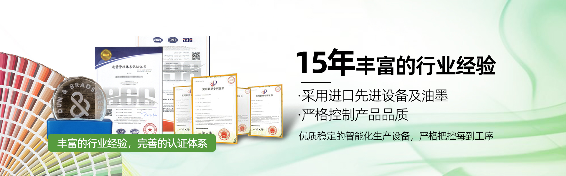 憑借15年豐富從業(yè)經(jīng)驗(yàn),管理制度嚴(yán)密,本色印印刷參照ISO質(zhì)量體系管理方法,全面實(shí)行ERP系統(tǒng)管理,嚴(yán)格控制包裝盒印刷品質(zhì);